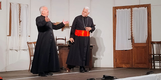 Il secondo dei quattro spettacoli in cartellone è previsto per domenica 2 novembre alle 16:00, stavolta a palazzo Bevilacqua di Crespino, dove sarà in scena la compagnia El Tanbarelo di Bellombra con "Don Checo", spettacolo (nella foto) firmato da Attilio Rovinelli ambientato in un piccolo paese montano degli anni ‘30. Una commedia divertente sviluppata attorno alla figura di un prete schietto, onesto, sincero e leale, che per ricondurre sulla retta via i propri fedeli adotta metodi piuttosto discutibili, frutto del suo carattere forte e del suo temperamento esuberante e istintivo. Sarà l'occasione per conoscere nel dettaglio la lunga storia dell'edificio che oggi ospita la Canonica di Crespino.